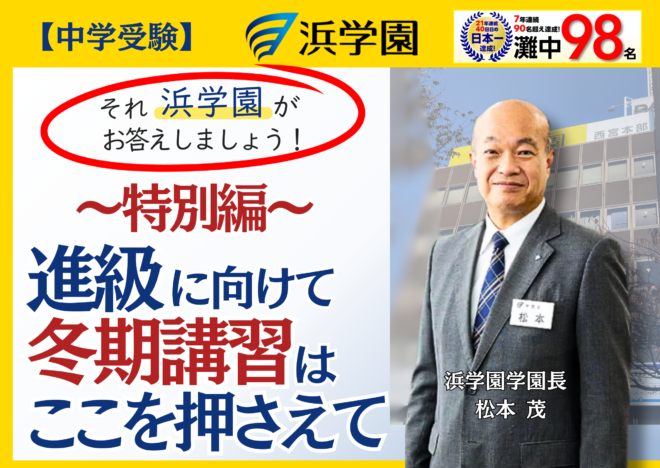 この「それ浜学園がお答えしましょう!」では、灘中合格者数、7年連続90名超え(2025年2月実績)を達成した「浜学園」の松本学園長が、中学受験や子育て情報をお届けします。